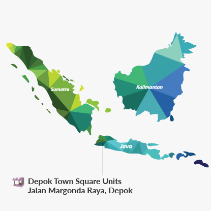 Depok Town Square is located on Jalan Margonda Raya, adjacent to the south eastern side of the prominent University of Indonesia. The centre has direct access to Pondok Cina Railway Station at its rear entrance, which is connected to Jalan Margonda Raya. Approximately 16 km south of Jakarta's Central Business District, Depok is renowned as the city of students, being home to four large universities. Over the last few years, the commercial area of Depok has been growing rapidly with the emergence of many modern shopping centre developments and commercial buildings.